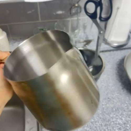 냄비를 그대로 담가 두었다.