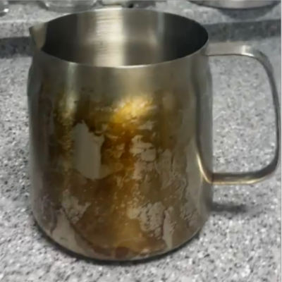몇 번 사용하지도 않았는데 바닥과 옆면이 갈색으로 변했다.